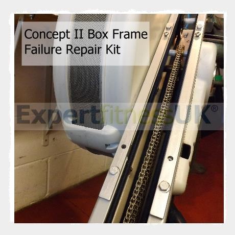Concept 2 E Type Indoor Rower Box Frame Reinforcement Repair Kit (Expert Brand). Due to a weakness in the E Type Concept II Rower Box Frame there has been cases of the front Leg Frame Fixings ripping the Riv-Nuts away from the Box Frame. In this instance an Expert brand Repair Kit can be fitted to the Concept 2 Rower to Repair, Strengthen and Reinforce the Box Frame Leg Assembly which is a more cost effective approach than replacing the entire Rower Box Frame Assembly.