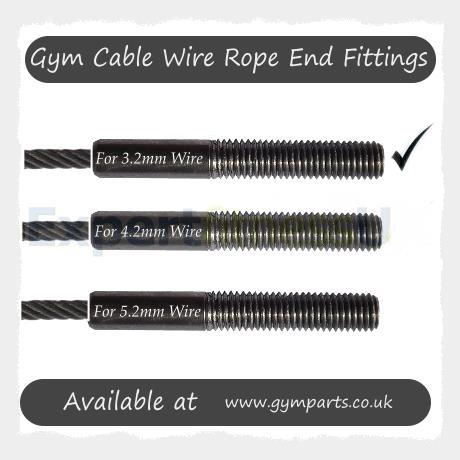Gym Cable Wire Rope M10 x 70mm Swage End Threaded Stud to suit 3mm Wire Rope Gym Cable. Swage End Threaded Stud has been pre-drilled with a 4.2mm hole. Ideal for use when a smaller diameter Wire Rope is to be fitted where a Commercial end fitting termination is required